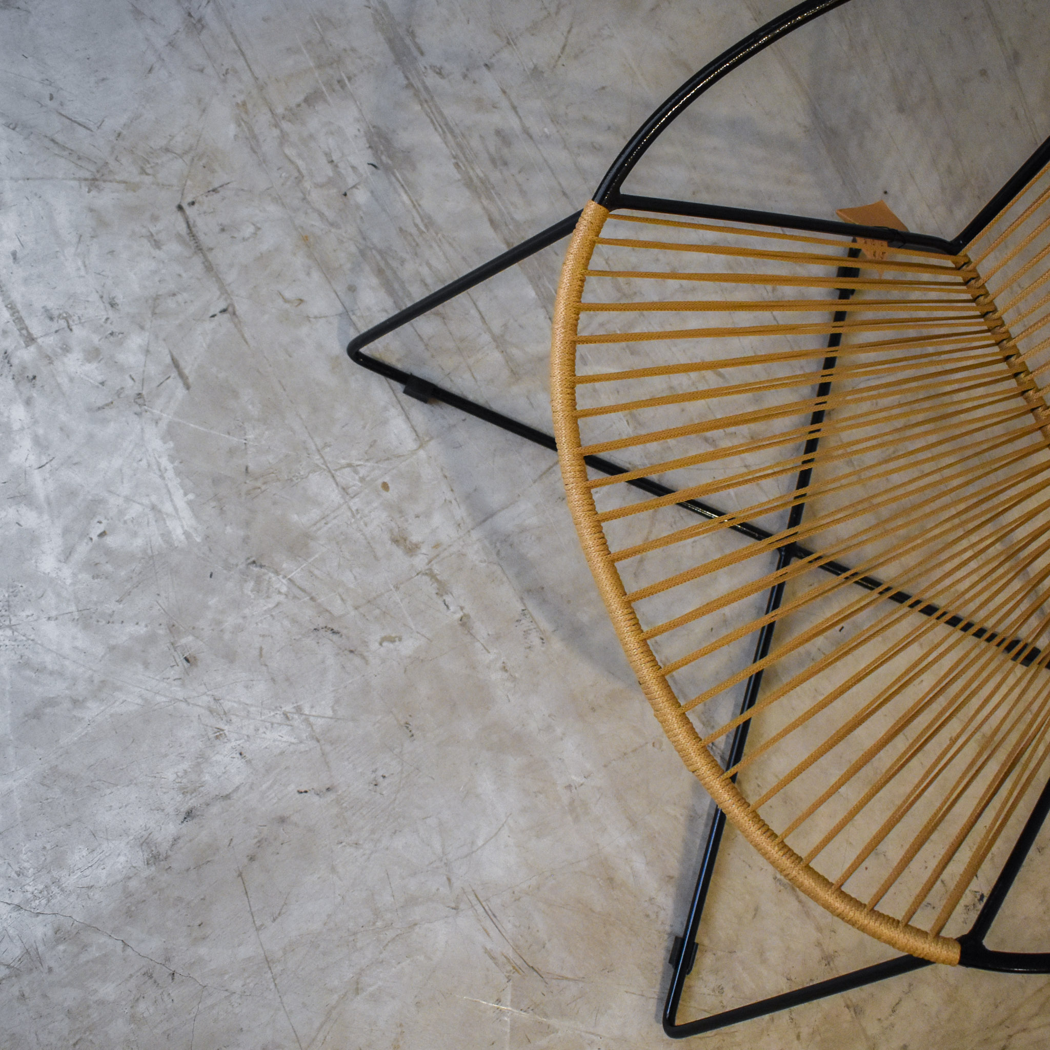 Estructura de hierro y soga tejida para exterior, lluvia y sol.